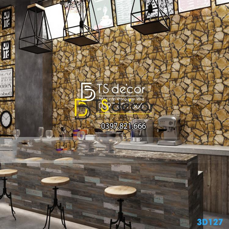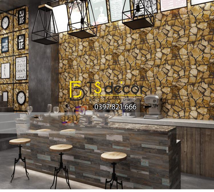 GIẤY DÁN TƯỜNG GIẢ ĐÁ PATTERN CHO QUÁN CAFE, TRÀ SỮA 3D127