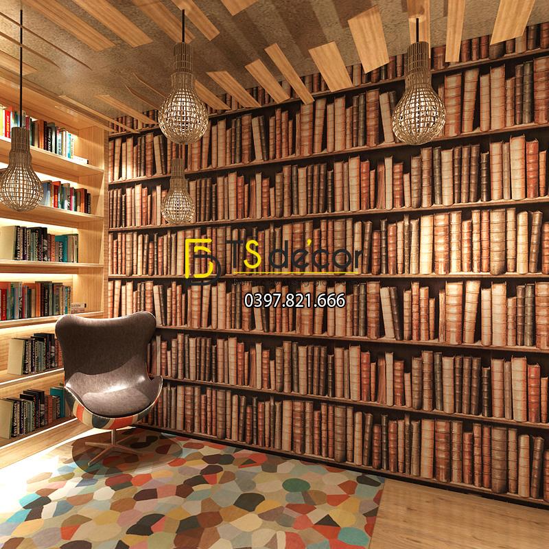 Thật là độc đáo với, bạn của bạn sẽ rất là ngạc nhiên với căn phòng toàn sách. ^^ Nhưng thật ra đó chỉ là giấy dán tường giả tủ kệ sách 3D189.
