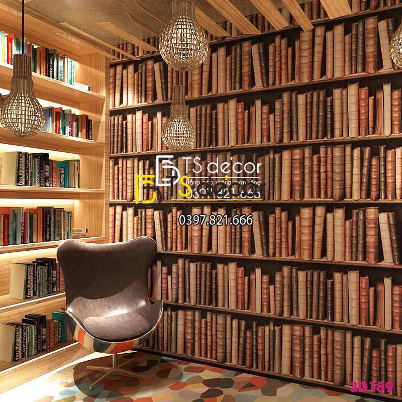 GIẤY DÁN TƯỜNG GIẢ KỆ TỦ SÁCH 3D189