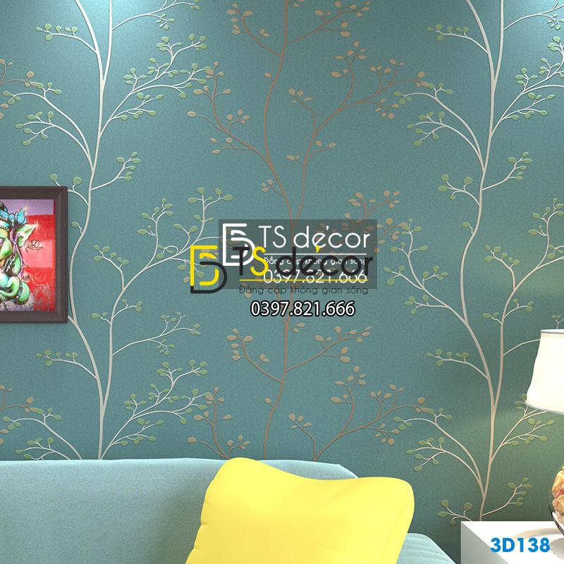 Giấy dán tường họa tiết cây lá nhỏ đơn giản 3D138 trang trí phòng ngủ, phòng khách, phòng trẻ em hay quán cafe trà sữa… Các tông màu nhẹ nhàng, đem lại cảm giác thư thái cho mọi người.