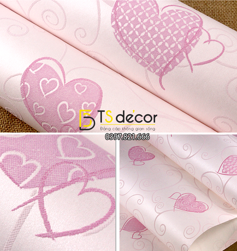 GIẤY DÁN TƯỜNG HỌA TIẾT TRÁI TIM 3D075