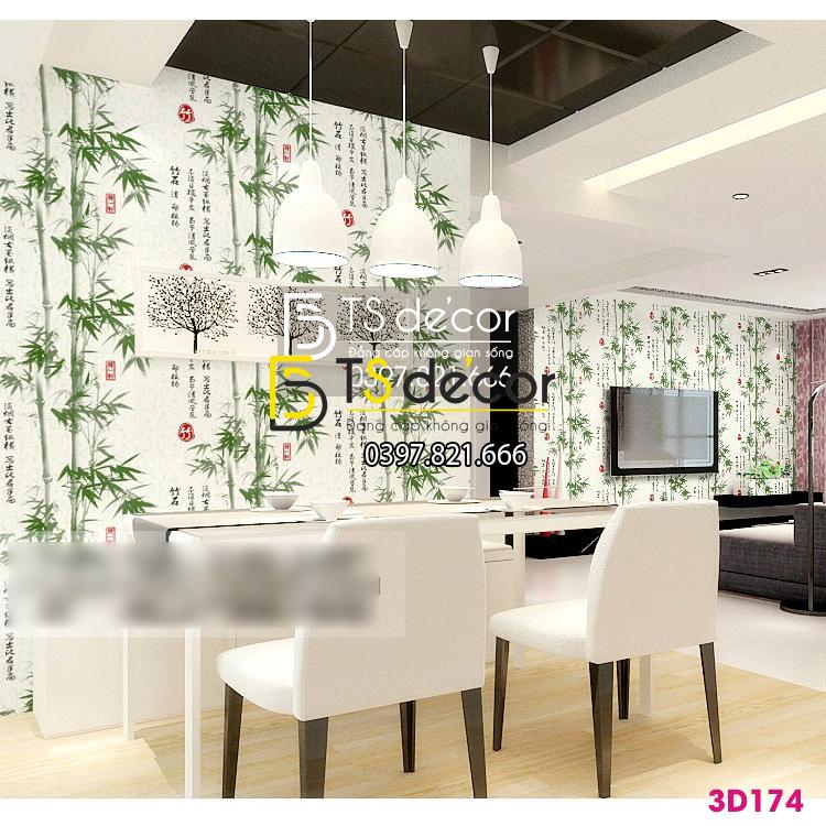 Giấy dán tường tre xanh thư pháp cổ 3D174. Kết hợp họa tiết cây tre xanh và thư pháp cổ. Họa tiết độc đáo, trang trí mọi không gian bạn thích.