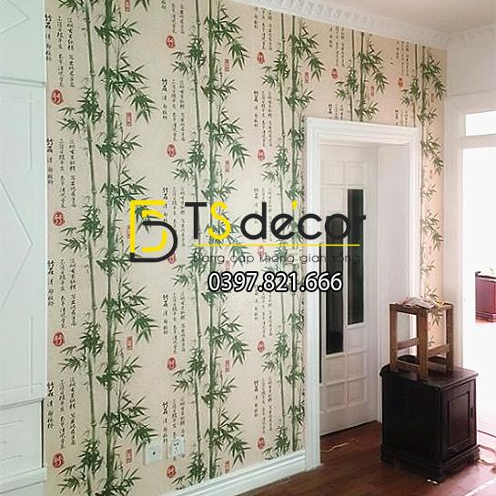 GIẤY DÁN TƯỜNG TRE XANH THƯ PHÁP CỔ 3D174