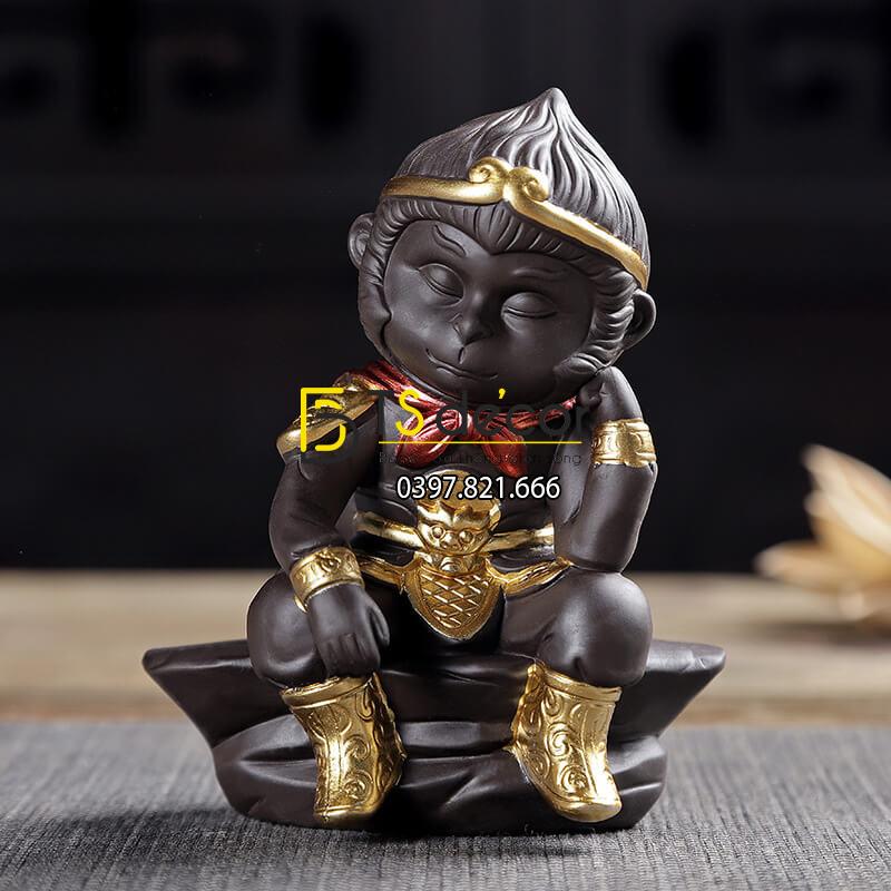 Tượng ngộ không đại thánh suy tư DTT12. Bạn có thể sử dụng tượng đại thánh để ở bàn làm việc, trên ô tô hay chỗ nào đó sang trọng đối với bạn nhé. Tượng được làm bằng chất liệu (Đất tử sa gốm). Màu cà phê sang trọng với kim cô vàng, bao tay vàng, bao chân vàng, vai vàng cực đẹp.